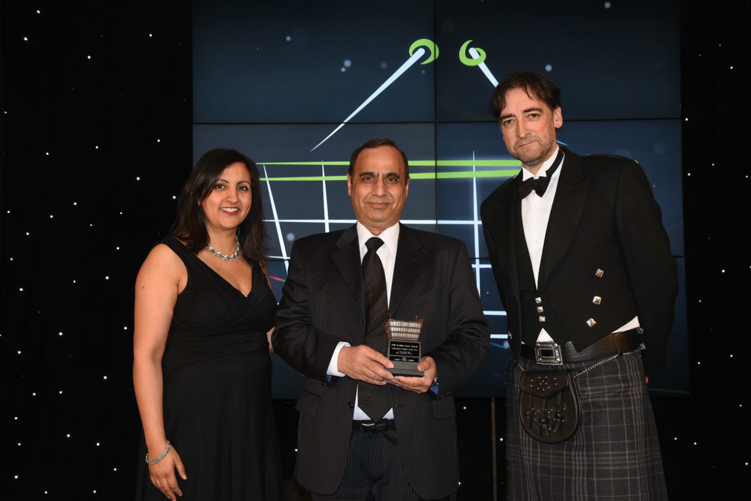 The Industry Achievement Award presented by Loch Lomond Group owner Colin Matthews and Scottish Grocer Managing Editor Patrick Duffy